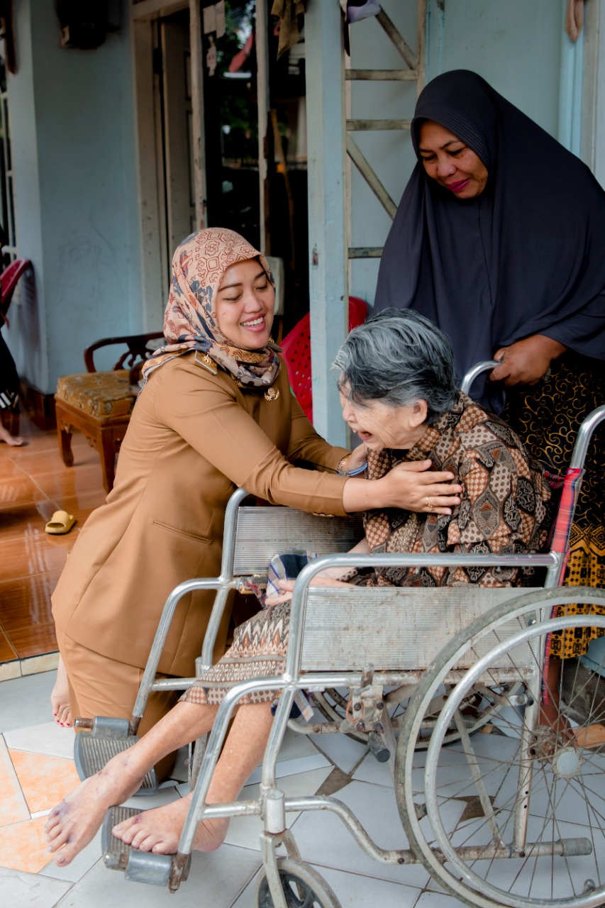 “Assalamualaikum, mbah ini ada kursi roda dari Bapak Gubernur dan Bapak Gubernur menitipkan salam,” ujar Wagub Nunik.