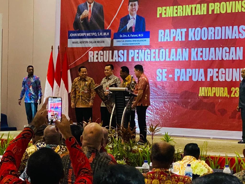 Hal tersebut disampaikan Direktur Jenderal (Dirjen) Bina Keuangan Daerah (Keuda) Kemendagri Agus Fatoni pada kegiatan Rapat Koordinasi (Rakor) dan Sosialisasi Regulasi Pengelolaan Keuangan Daerah Provinsi dan Kabupaten se-Papua Pegunungan Tahun 2023 di Hotel Suni Abepura, Jayapura, Papua, Jumat (24/3/2023).