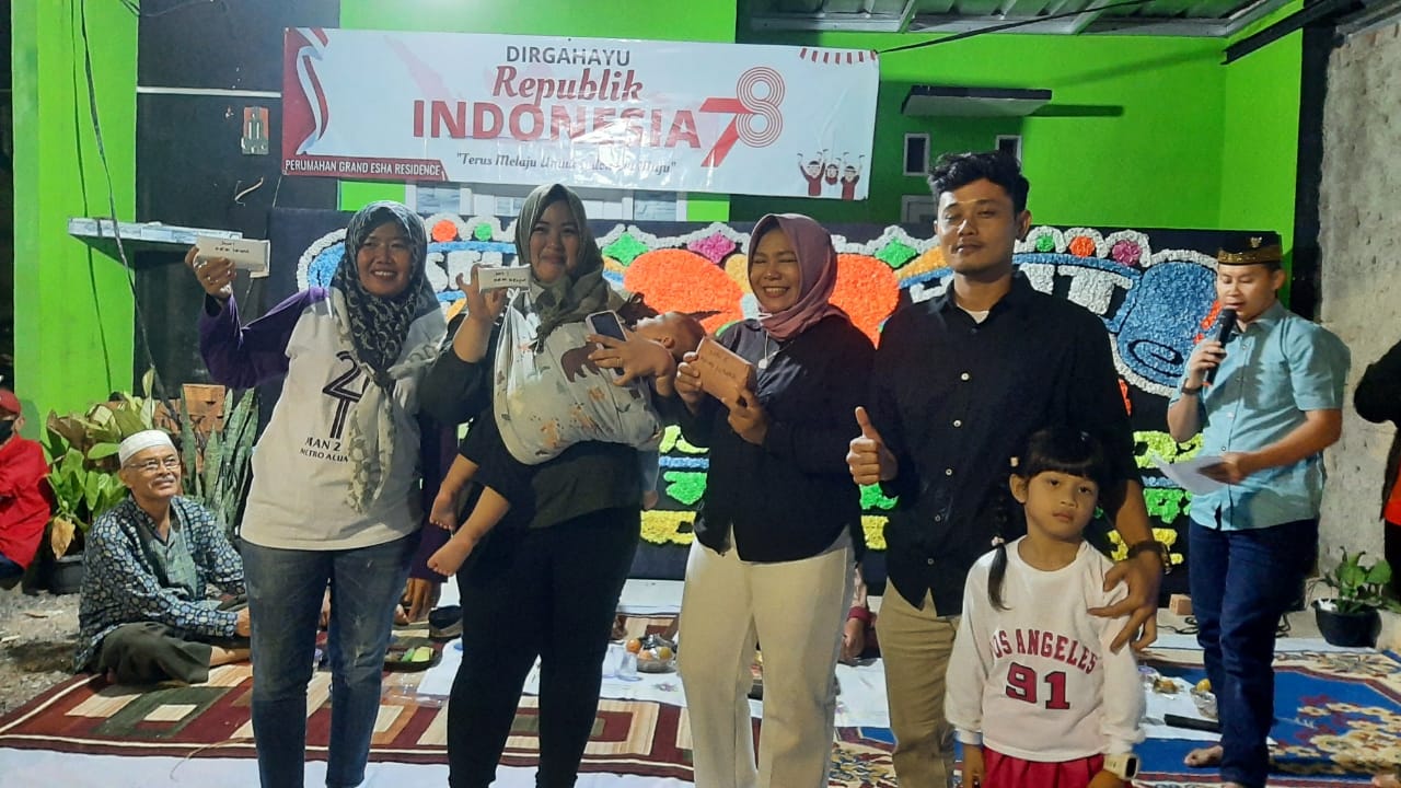 “Sebelumnya saya ucapkan terimakasih kepada seluruh warga Atas kerja gotong royong dalam menyiapkan rangkaian kegiatan HUT RI ke 78. Terimakasih atas semua donasi yang disumbangkan baik berupa uang, barang/hadiah, makanan, minuman, pemikiran dan tenaga. Semoga Allah membalas kebaikan kita semua. Selamat untuk para pemenang lomba dan peraih dorprize. Yang belum dapat hadiah tetap bersyukur dan giat lagi latihan untuk perlombaan tahun depan, ” Ucap Ketua RT Perumahan Grand Esha, Cici Anggara.
