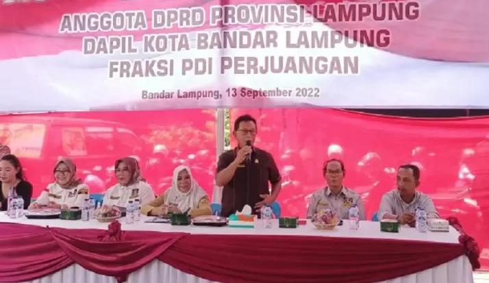 Lampung,- (WS99.Net) Empat anggota DPRD Provinsi Lampung menggelar reses bersama untuk menyerap aspirasi masyarakat. Reses dihadiri Ar. Suparno, Kostiana, Aprilliati dan Lenistan Nainggolan, di lapangan DPC PDI Perjuangan Kota Bandar Lampung, Selasa (13/9/2022).