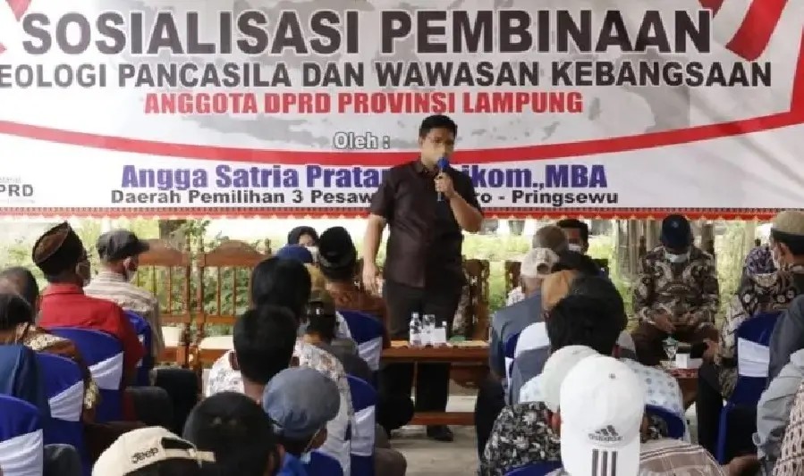 Lampung,- (WS99.Net) Anggota DPRD Provinsi Lampung dari Fraksi Demokrat Angga Satria Pratama berkunjung ke daerah pemilihannya untuk melakukan Sosialisasi Pembinaan Ideologi Pancasila.