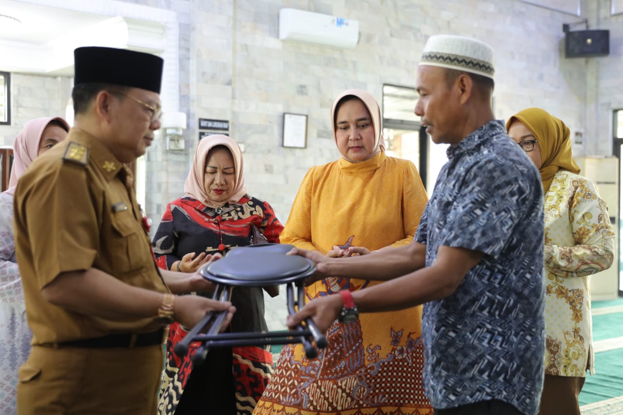 Dalam kesempatan itu, Ibu Riana didampingi Bupati Lampung Utara Budi Utomo secara simbolis menyerahkan bantuan alat bantu jalan kursi roda dan tongkat kruk kepada penyandang disabilitas.(Adpim)
