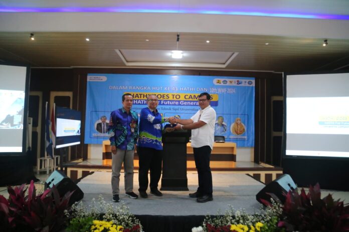 Lampung,- (WS99) Dalam rangka HUT ke-43 Himpunan Ahli Teknik Hidraulik Indonesia (HATHI) dan 10th World Water Forum, HATHI bekerja sama dengan Fakultas Teknik (FT) Universitas Lampung (Unila) menggelar “HATHI Goes to Campus” di Aula Gedung A FT, Kamis, 29 Februari 2024.