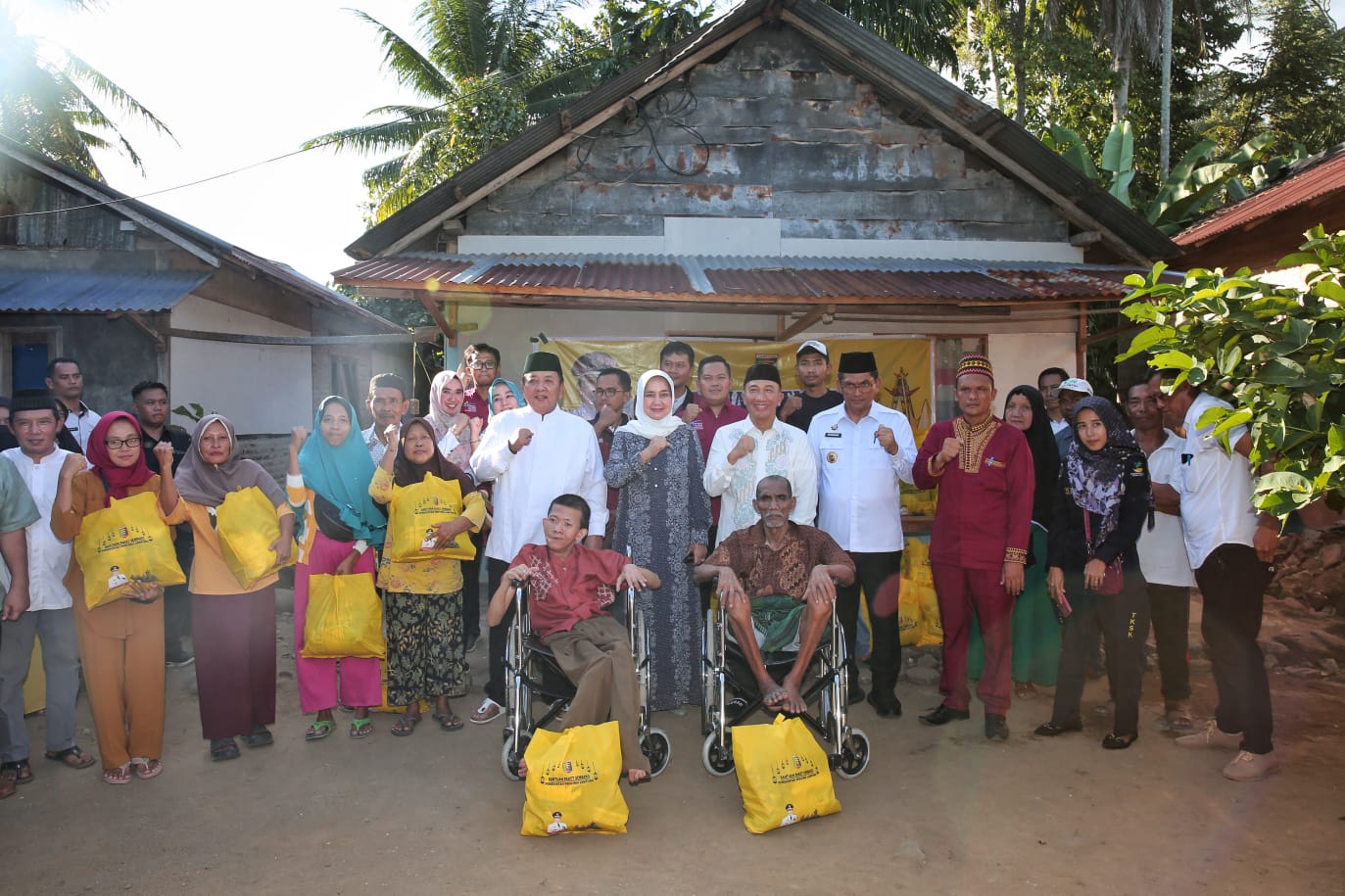 Kunjungan diawali dengan memberikan bantuan paket sembako dan 2 unit kursi roda kepada warga disabilitas di Kelurahan Baros, Kota Agung.