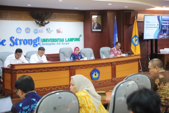 Lampung,- (WS99)  Rektor Universitas Lampung (Unila) Prof. Dr. Lusmeilia Afriani, D.E.A., IPM., ASEAN Eng., memimpin Focus Group Discussion (FGD) Rencana Strategis (Renstra) 2023–2027. Kegiatan berlangsung di ruang sidang utama lantai dua rektorat, Kamis, 2 Mei 2024.
