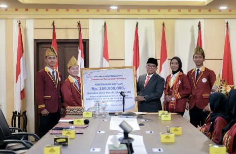Dalam kesempatan itu, Keluarga Besar Mahasiswa Universitas Teknokrat Indonesia menyerahkan bantuan Rp. 150 juta untuk pembangunan masjid Al-Hijrah Bandar Negara Kota Baru Provinsi Lampung kepada Pj. Gubernur Lampung.