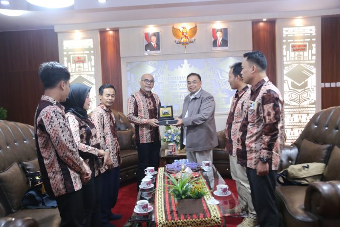 Lampung,- (WS99) Universitas Lampung (Unila) menerima kunjungan kerja (kunker) dari Dinas Kepemudaan dan Olah raga (Dispora) Kabupaten Lebak, Provinsi Banten, di ruang tamu Rektor, Senin, 18 November 2024.