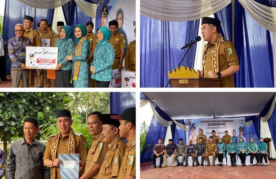 Pesawaran,- (WS99.Net) Bupati Pesawaran Dendi Ramadhona, menghadiri Musyawarah Perencanaan Pembangunan (Musrenbang) Kecamatan Way Ratai dan Kedondong dalam rangka penyusunan Rencana Kerja Pembangunan Daerah (RKPD) Tahun 2026. Kegiatan ini berlangsung di Saung Singgah Desa Wates, Kecamatan Way Ratai, pada Selasa (18/2/2025) dan dihadiri oleh Ketua dan Wakil Ketua TP PKK, Asisten Ekobang, para Kepala Perangkat Daerah, Kepala Bagian, Camat Kedondong, Camat Way Ratai, serta para kepala Desa dari kecamatan terkait.