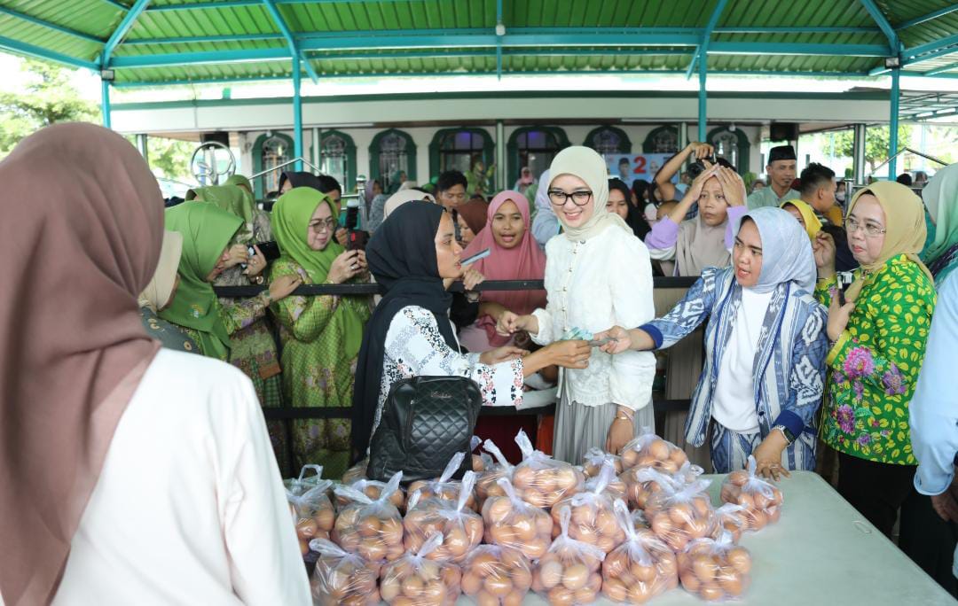 Lampung Selatan,- (WS99.Net) Wakil Gubernur Lampung Jihan Nurlela membuka Pasar Murah yang diselenggarakan Dinas Perindustrian dan Perdagangan (Disperindag) Provinsi Lampung bekerja sama dengan Pengurus Wilayah Muslimat Nahdlatul Ulama (PW Muslimat NU) Provinsi Lampung, di halaman Masjid Nurul Iman, Desa Tanjung Sari, Kecamatan Natar, Kabupaten Lampung Selatan, Minggu (23/03/2025).