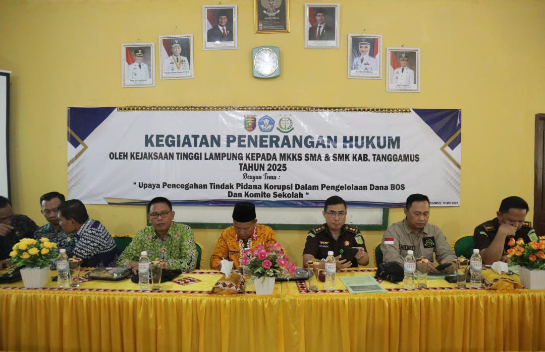 Bandar Lampung,- (WS99.Net) Kejati Lampung melalui Seksi Penerangan Hukum pada Bidang Asisten Intelijen Kejati Lampung pada hari Kamis 15 Mei 2025 menyelenggarakan Penerangan Hukum pada MKKS SMA dan SMK Se-Kabupaten Tanggamus yang bertemakan “Upaya Pencegahan Tindak Pidana Korupsi dalam Pengelolaan Dana BOS dan Komite Sekolah”, bertempat di SMAN 1 Talang Padang Kab. Tanggamus.