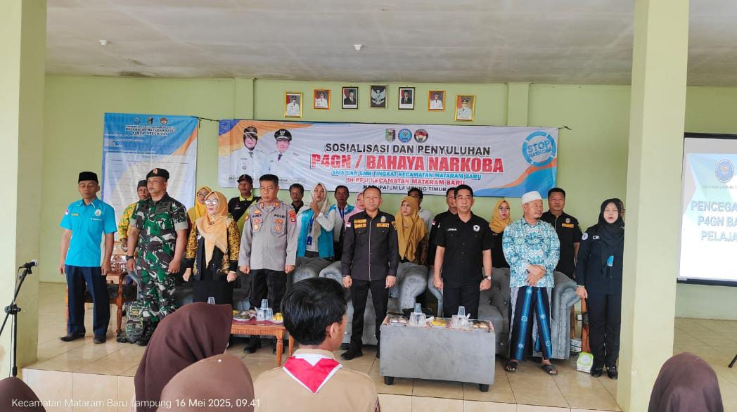 Mataram Baru,- (WS99.Net) Dalam upaya meningkatkan kesadaran generasi muda terhadap bahaya narkoba, DPC Gerakan Nasional Anti Narkotika (GRANAT) Lampung Timur bekerja sama dengan Badan Narkotika Nasional (BNN) menggelar kegiatan sosialisasi dan penyuluhan P4GN (Pencegahan, Pemberantasan, Penyalahgunaan, dan Peredaran Gelap Narkoba), di aula kecamatan mataram baru, numat (15/5/2025).