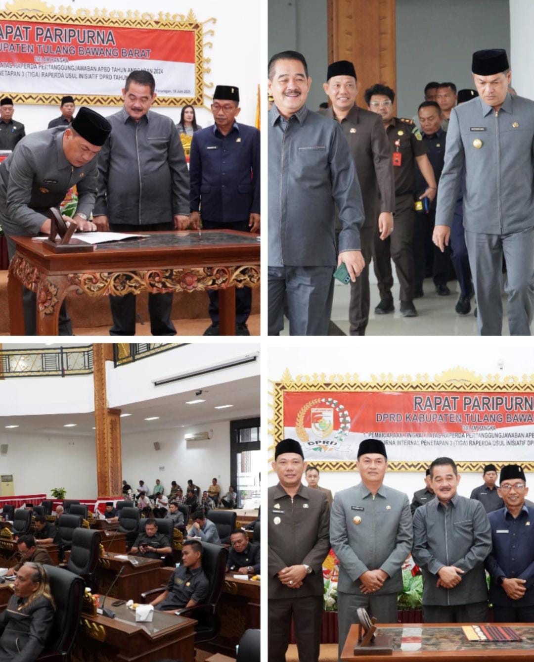Bandarlampung, – (ws99.Net) DPRD Kabupaten Tulang Bawang Barat Gelar Rapat paripurna dalam rangka pembicaraan tingkat II raperda pertanggungjawaban APBD tahun anggaran 2024 dan paripurna internal penetapan 3 (Tiga) Raperda usul inisiatif DPRD tahun 2025.