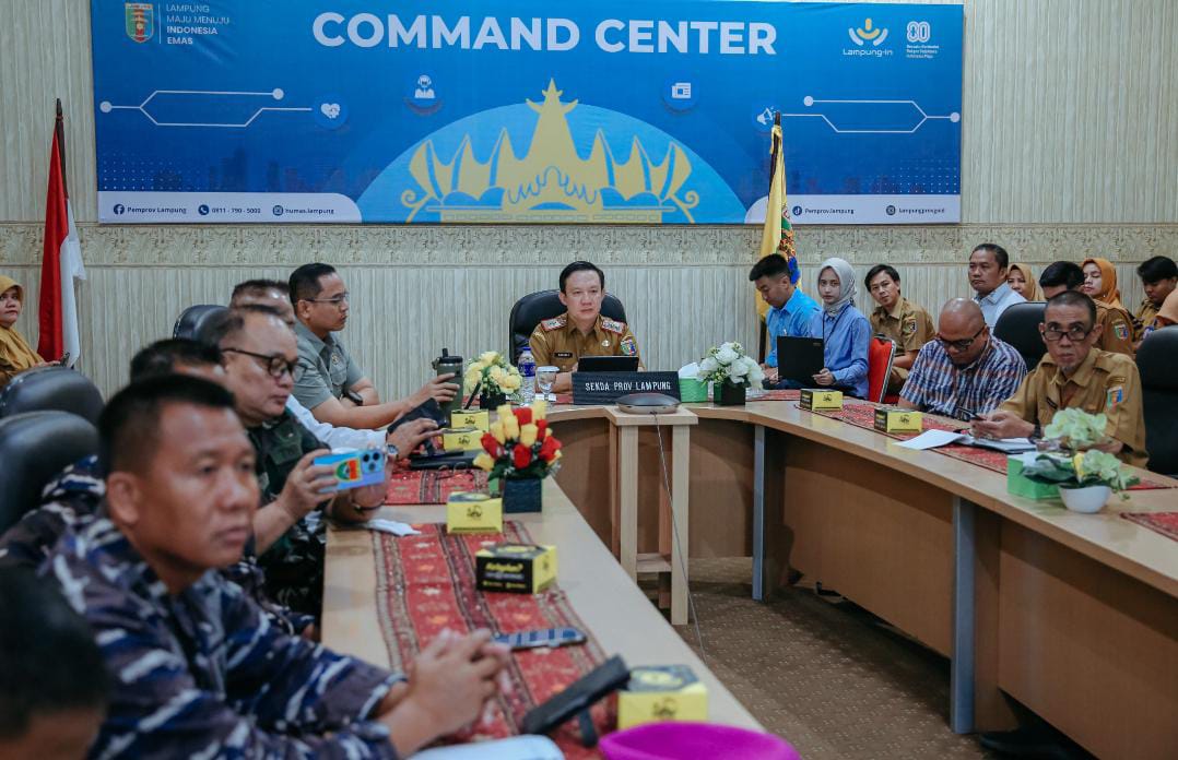 Bandar Lampung,-(WS99) Sekretaris Daerah Provinsi Lampung Marindo Kurniawan bersama sejumlah kepala perangkat daerah terkait dan unsur Forum Komunikasi Pimpinan Daerah (Forkopimda) Provinsi Lampung, mengikuti rapat Koordinasi Pengendalian Inflasi Daerah Tahun 2025 yang dipimpin oleh Mendagri Tito Karnavian secara virtual dari Ruang Command Center Dinas Kominfotik Provinsi Lampung, Selasa (16/9/2025).