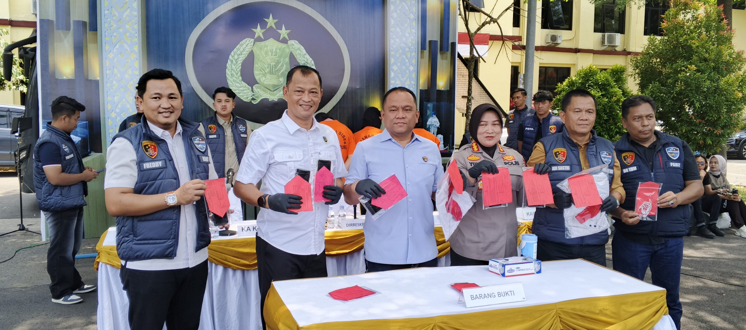 Dari tangan para pelaku, polisi menyita sejumlah barang bukti berupa ponsel, kartu ATM, hingga kaus bertuliskan ‘Jatanras’. (*)