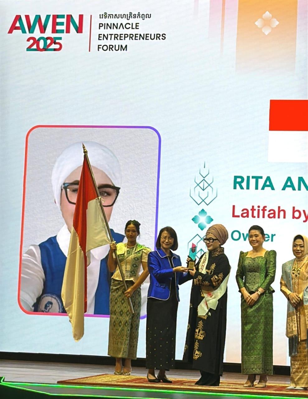 Nasional, – Perancang busana asal Lampung, Rita Anomsari meraih penghargaan Asean Women Enterpreuner Netwoek (Awen) di Kamboja, pada Jumat (21/11).