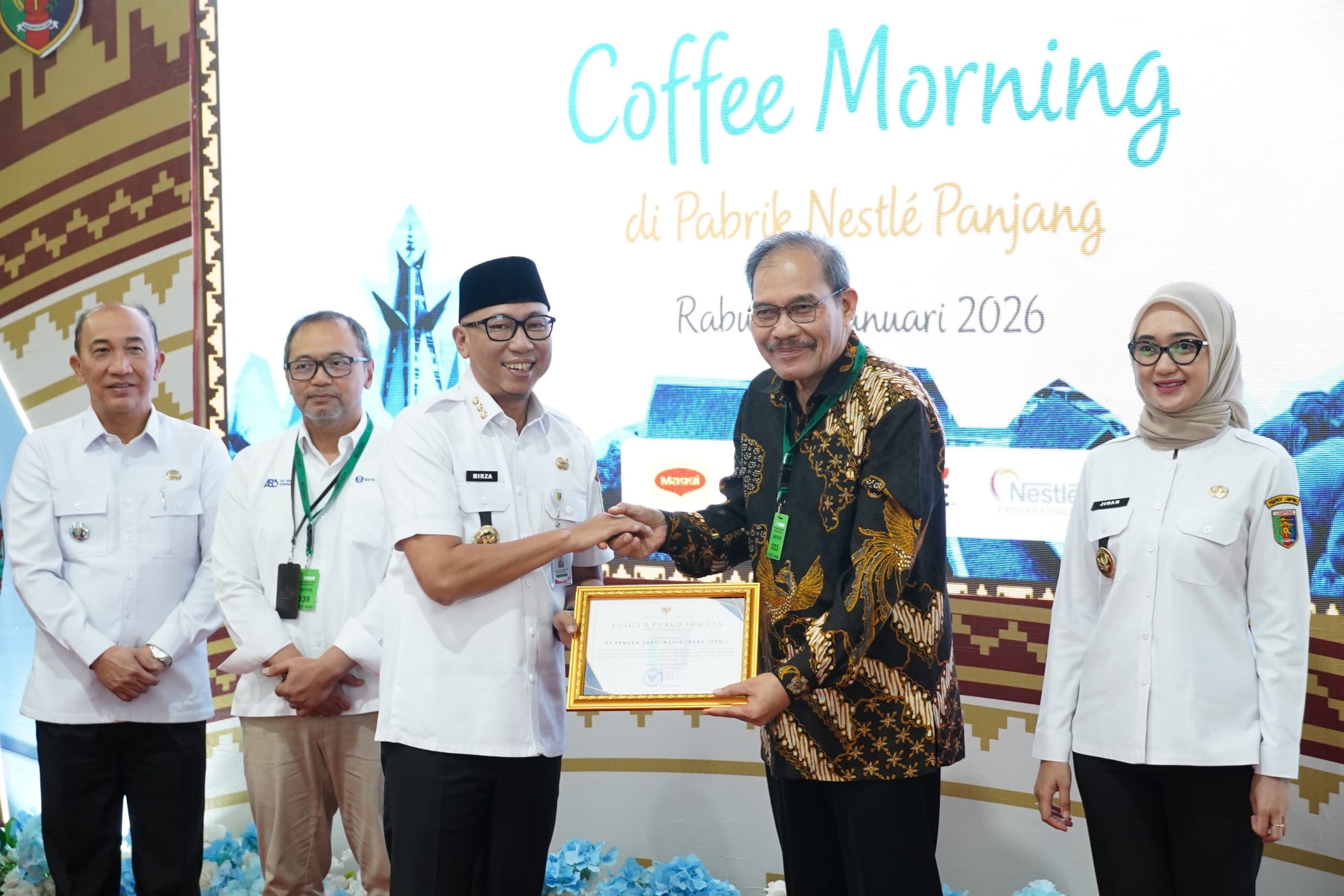 Bandar Lampung,- Pemerintah Provinsi Lampung menggelar coffee morning bersama pimpinan dunia usaha di PT. Nestlé Indonesia Panjang Factory, Rabu (28/1/2026), sebagai upaya memperkuat sinergi dan dialog langsung untuk mempercepat pertumbuhan ekonomi daerah yang inklusif dan berkelanjutan.