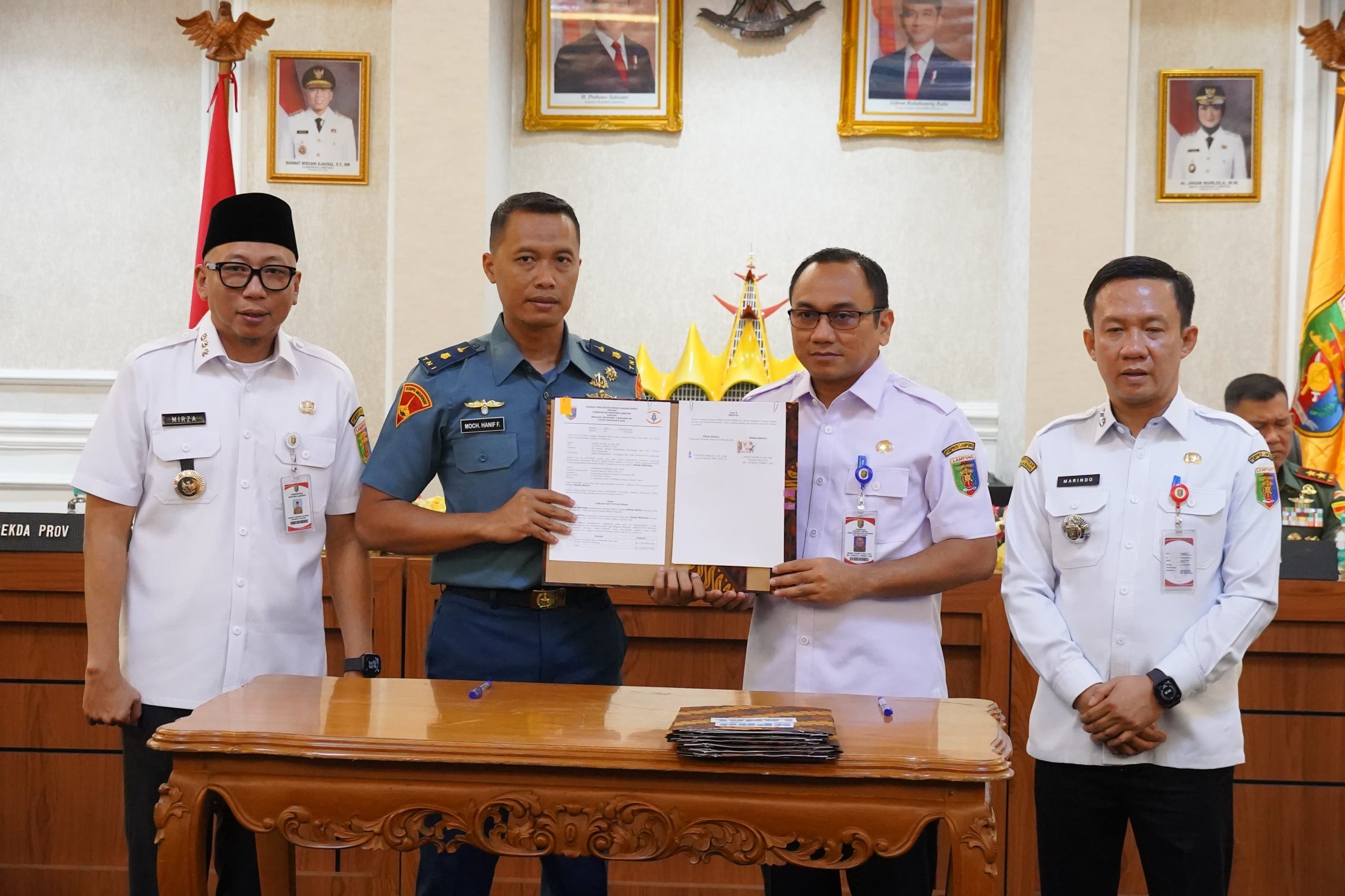 Penandatanganan dilakulan oleh Plt. Badan Pengelolaan Keuangan dan Aset Daerah (BPKAD) Provinsi Lampung, Nurul Fajri, Pangdam XXI/Radin Inten Mayjen Kristomei Sianturi, Danrem 043/Garuda Hitam Brigjen Haryantana dan perwakilan dari unsur TNI dan Polri.
