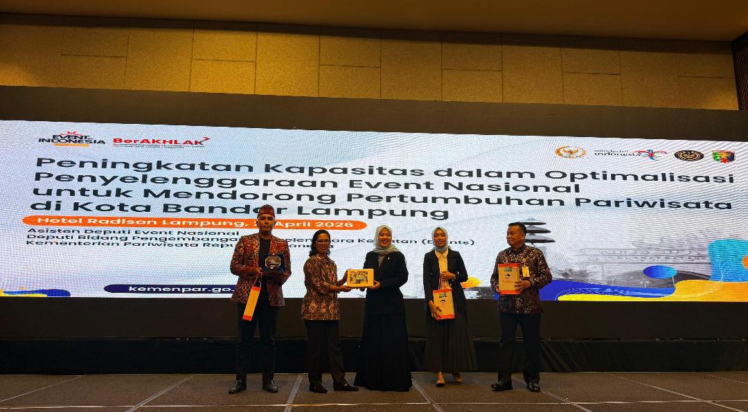Bandarlampung,- Bandar Lampung kembali menegaskan perannya sebagai salah satu pusat pertumbuhan pariwisata di Sumatera melalui kegiatan peningkatan kapasitas penyelenggaraan event nasional. Kegiatan yang berlangsung pada 21 April 2026 di Ballroom Radisson Hotel Lampung ini menjadi langkah strategis dalam memperkuat sinergi lintas sektor.