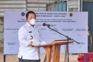 Bandar Lampung,- Wartasyah99.Net- Gubernur Lampung Arinal Djunaidi bersama Kapolda Lampung Irjen Pol Purwadi Arianto dan Irjen Kemenhub serta jajaran Stakeholder Angkutan Barang