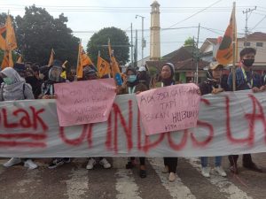 Bandar Lampung,- Wartasyah99.Net Aksi unjuk rasa Ikatan Mahasiswa Muhammadiyah (IMM) Bandar Lampung, Menolak UU Cipta Kerja di depan Gerbang Kantor Pemerintah Kota Bandar