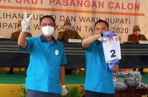 Waykanan,- KPU Way Kanan menggelar pengundian nomor urut pasangan calon Bupati dan Wakil Bupati Way Kanan, Kamis (24/09/2020). Hasilnya, nomor urut 1